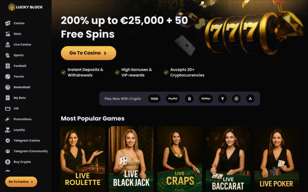 بیش از ۴۰۰۰ بازی، بونوس ۲۰۰٪ تا بیشتر از €25,000 به علاوه پنجاه اسپین، پشتیبانی از بیش از ۲۰ رمزارز و برداشت سریع، تجربهای روان فراهم میکند. برنامه VIP ششمرحلهای، کشبک هفتگی برای دارندگان $LBLOCK و بخش کازینوی زنده و اسپورتبوک، انتخابها را کامل میکند.