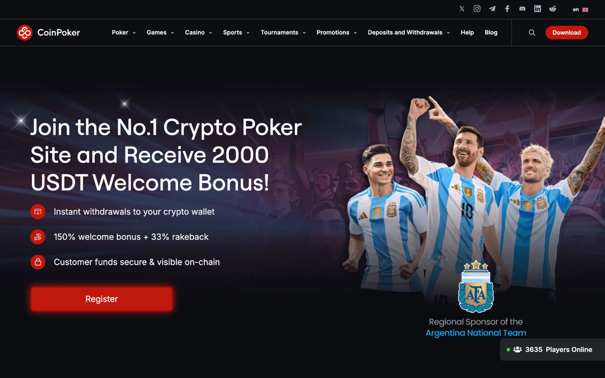 CoinPoker | تا ۲۰۰۰ USDT + ۱۵۰٪ بونوس | پوکر آنلاین (Texas Hold’em، Omaha) | BTC, ETH, USDT, SOL, BNB و کارت بانکی | ریکبک ۳۳٪ | بزرگترین اتاق پوکر کریپتویی، RNG غیرمتمرکز، اپلیکیشن موبایل |